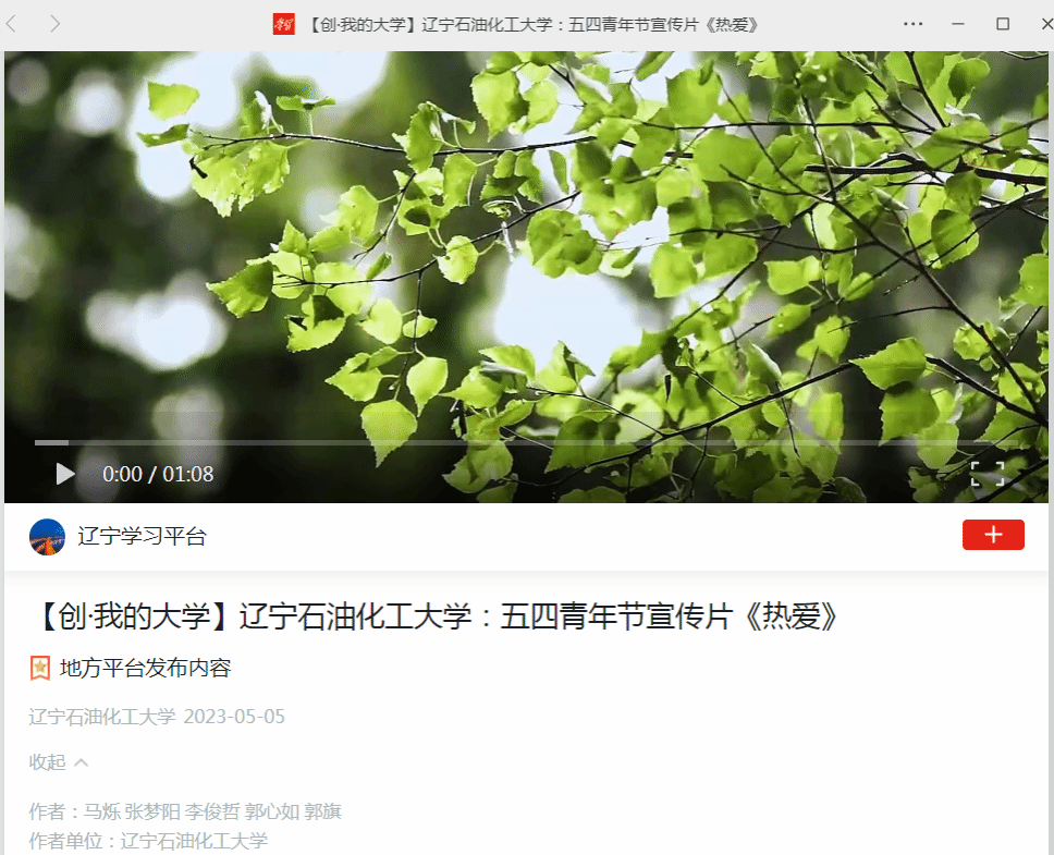 学习强国:https://article.xuexi.cn/articles/index.html?art_id=2937748169483689886&cdn=https%3A%2F%2Fregion-liaoning-resource&item_id=2937748169483689886&study_style_id=video_default&t=1683286813932&showmenu=false&ref_read_id=77ac6f37-55d7-45f3-b1b7-4f7da33a24c5&pid=&ptype=-1&source=share&share_to=wx_single