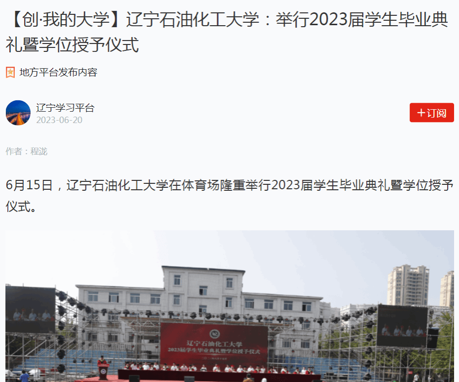 编者按:近日,学习强国辽宁学习平台、辽宁日报·北国号、人民日报客户端·人民号等媒体平台对我校在体育场隆重举行2023届学生毕业典礼暨学位授予仪式进行了宣传报道。现将相关报道转载如下: