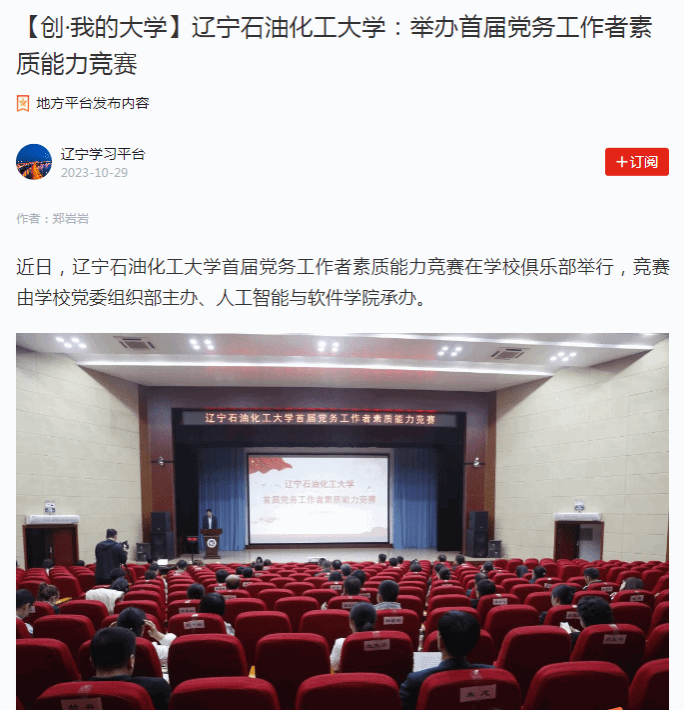 编者按:近日,学习强国辽宁学习平台、辽宁高校党建微信公众号、辽宁日报·辽望号、人民日报客户端·人民号等媒体平台对我校举办首届党务工作者素质能力竞赛进行了宣传报道。现将相关报道转载如下: