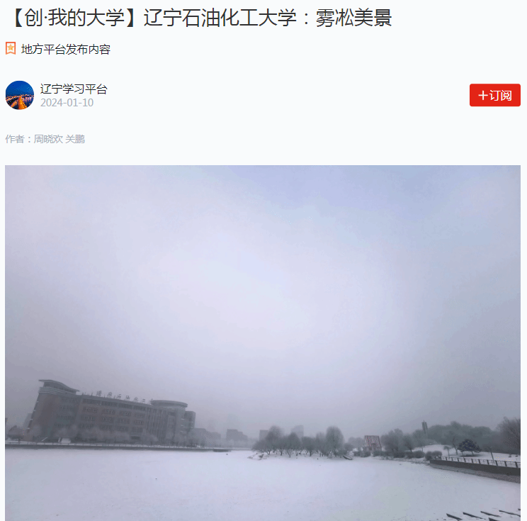 编者按:近日,我校在雾淞美景的装饰下,校园变成了美轮美奂的童话世界。教育部中国大学生在线、学习强国辽宁学习平台、辽宁日报·辽望号、人民日报客户端·人民号对我校的美丽风景图集进行了宣传报道,现将相关报道转载如下: