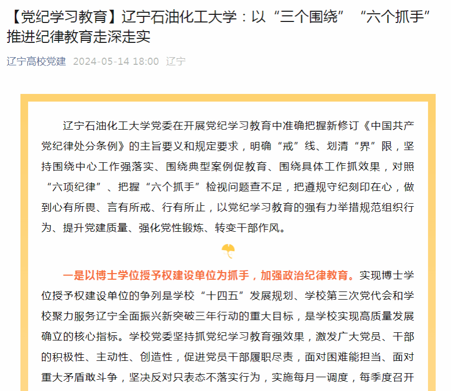 编者按:学校在开展党纪学习教育中准确把握新修订《中国共产党纪律处分条例》的主旨要义和规定要求,明确“戒”线、划清“界”限,坚持围绕中心工作强落实、围绕典型案例促教育、围绕具体工作抓效果,对照“六项纪律”、把握“六个抓手”检视问题查不足,把遵规守纪刻印在心,做到心有所畏、言有所戒、行有所止,以党纪学习教育的强有力举措规范组织行为、提升党建质量、强化党性锻炼、转变干部作风。5月14日,辽宁高校党建微信公众号以《国产亚洲综合一区二区三区_亚洲欧美日韩中文天堂_尤物在线观看视频不卡无码_国产最新精品亚洲2025不卡_亚洲成Av人在线观看片水蜜桃:以“三个围绕”“六个抓手”推进纪律教育走深走实》为题,对此进行了宣传报道。现将相关报道转载如下: