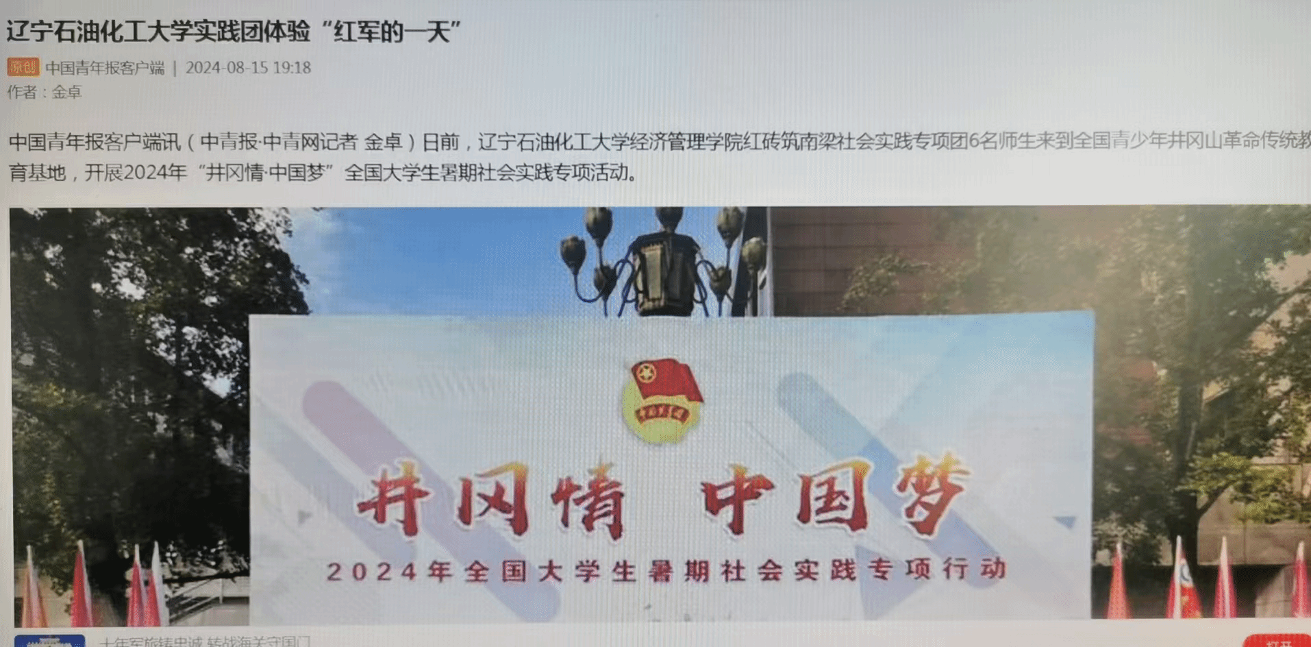 编者按:近日,我校经济管理学院红砖筑南梁社会实践专项团6名师生来到全国青少年井冈山革命传统教育基地,开展2024年“井冈情·中国梦”全国大学生暑期社会实践专项活动。8月15日,中国青年报客户端对此进行了宣传报道。现将相关报道转载如下: