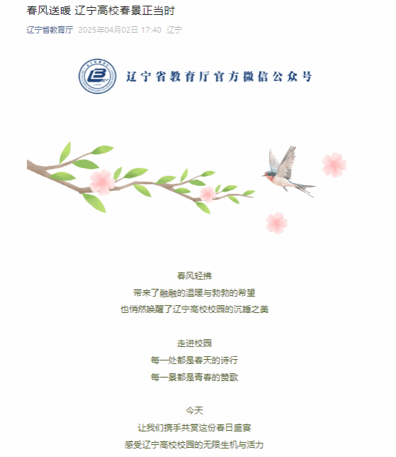 辽宁省教育厅官方微信公众号:春风送暖 辽宁高校春景正当时